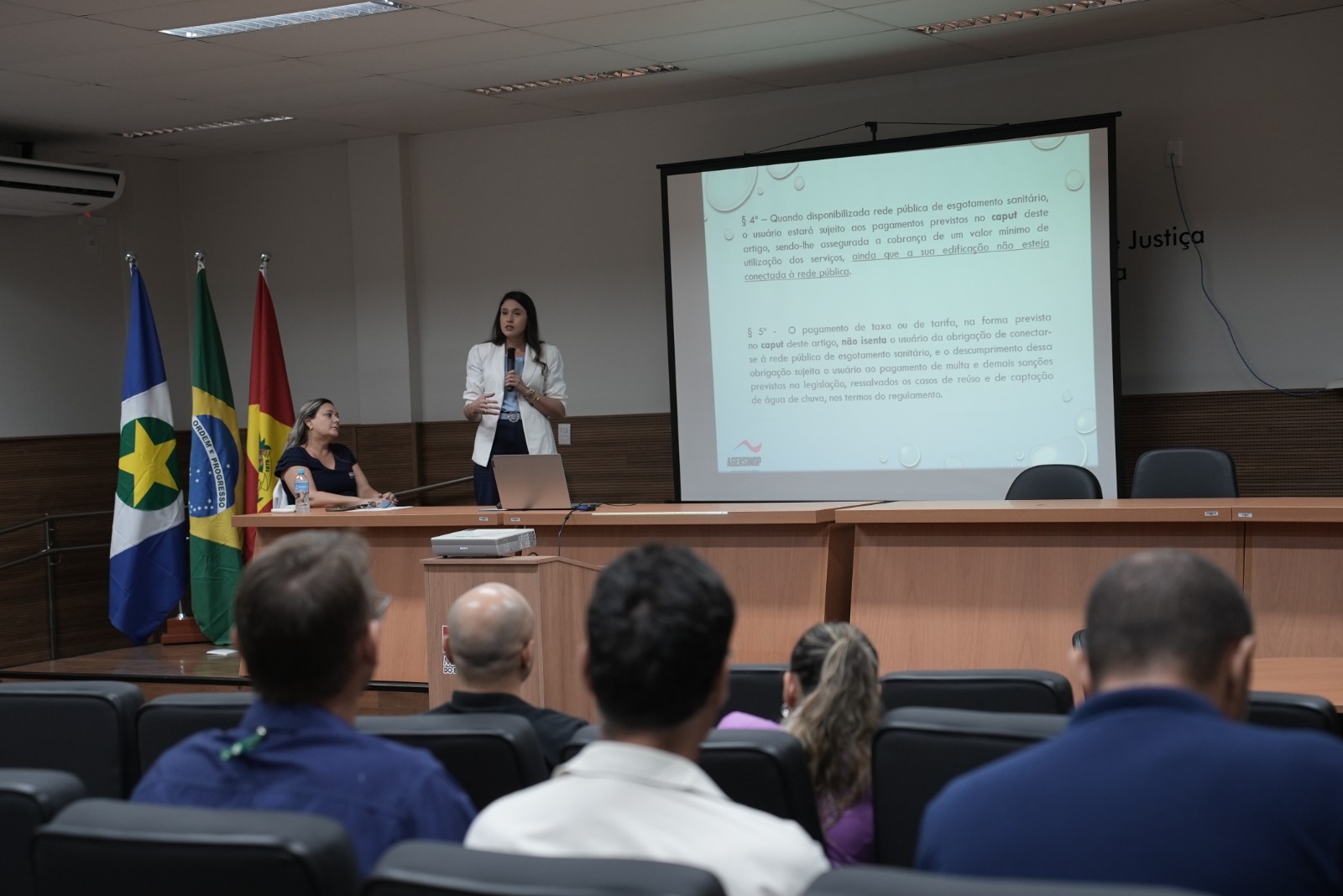 O trabalho de campo encerrou-se com uma reunião no auditório do Ministério Público, na quinta-feira (23), conduzida pela diretora-presidente da Ager Sinop, Márcia Cristina Lopes Hernandorena, e pela gestora de Regulação e Fiscalização Rayla Della Colleta. O encontro reuniu representantes da concessionária Águas de Alta Floresta, vereadores, empresários do setor imobiliário e a promotora de Justiça Dra. Fernanda Alberton, que acompanha de perto o tema. Segundo Márcia Cristina, o objetivo da visita foi aproximar a agência dos usuários e reforçar as regras previstas no novo Marco Legal do Saneamento (Lei 14.026/2020), que estabelece a meta de 90% de cobertura de esgoto até 2033.