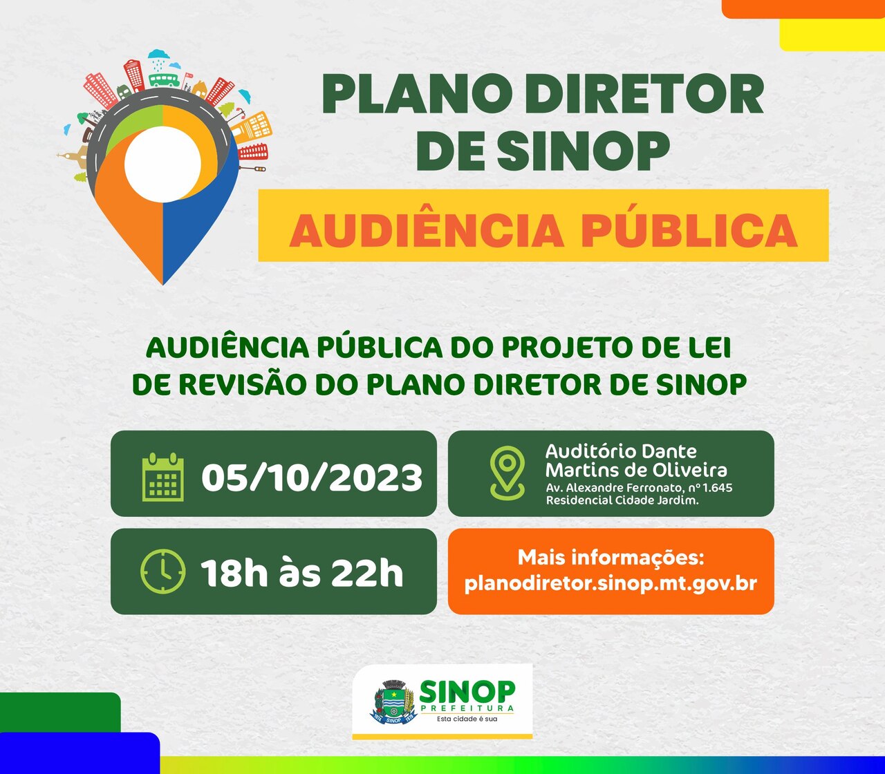 Audiência Pública irá apresentar e debater revisão do Plano Diretor de Sinop nesta quinta-feira