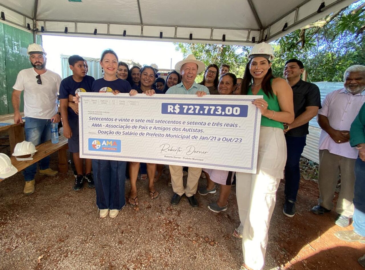 O prefeito Roberto Dorner e o governador Mauro Mendes, acompanhados do deputado federal Juarez Costa, do deputado estadu...