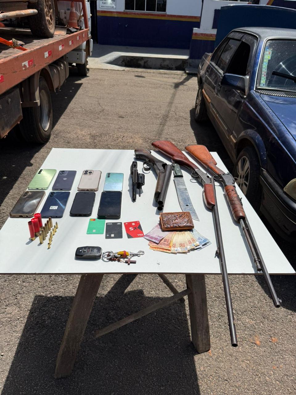 A Polícia Militar realizou uma ação integrada que resultou na prisão de cinco suspeitos envolvidos em um roubo ocorrido na Fazenda Mata Verde. Durante o crime, as vítimas foram mantidas em cárcere privado por aproximadamente 12 horas, sob grave ameaça com armas de fogo.