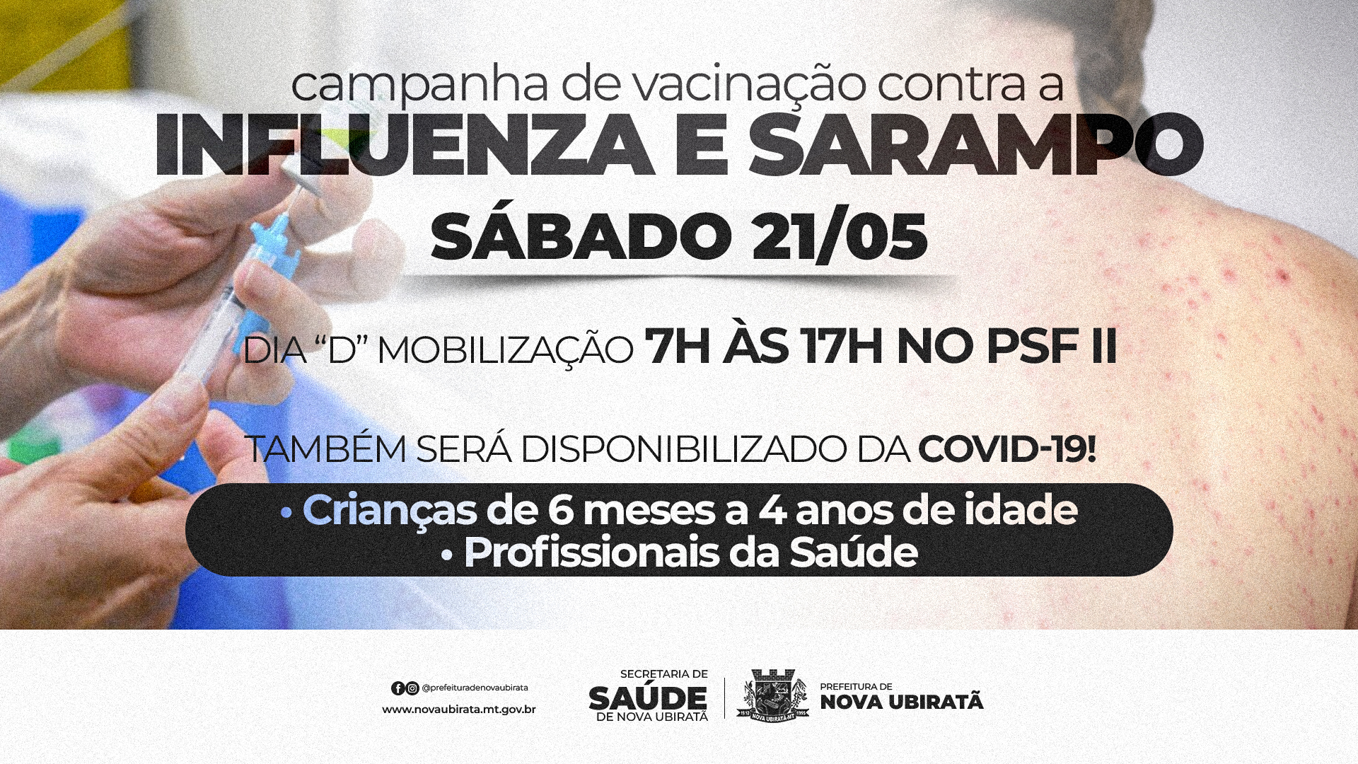A Secretaria Municipal de Saúde, vai realizar no próximo sábado dia 21 de Maio, mais um dia "D...